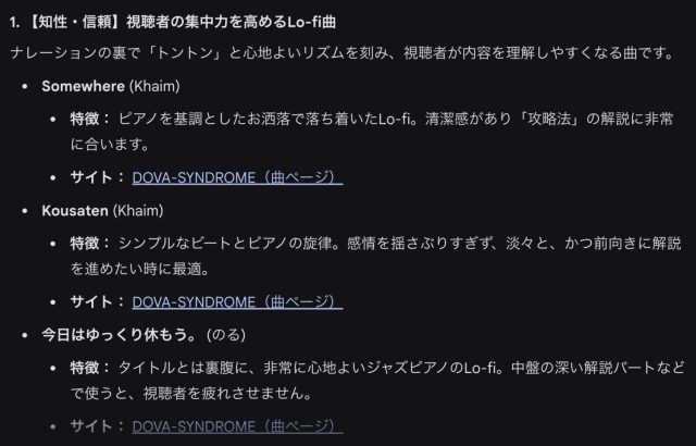 動画に合うBGMを探すのは時間がかかります。GeminiにBGMを探してもらいましょう。