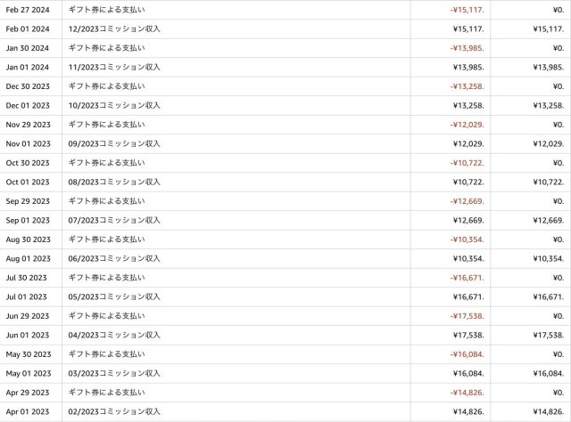 ↓Amazonアソシエイトの報酬の支払いの画面。Amazonアソシエイトは力を入れてないのですが、月1万円ほどの収益がでています。