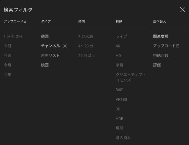 フィルタで「チャンネル」を選んで検索するのもありです。