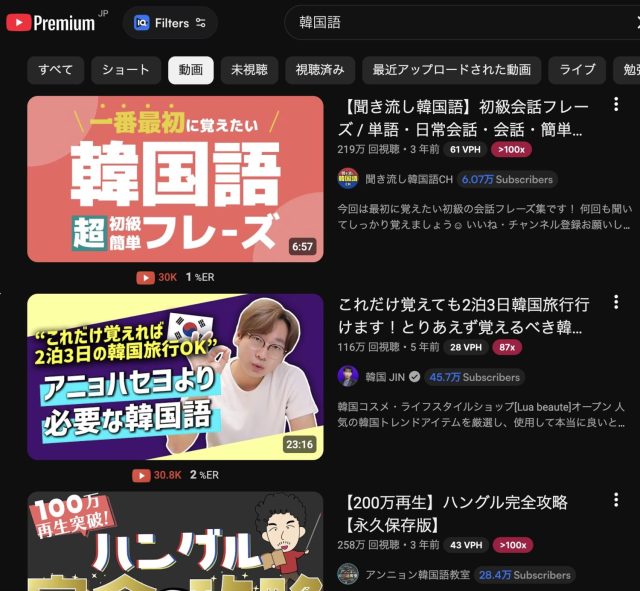 例えば、韓国語のジャンルを考えているなら「韓国語」で検索します。10本から20本程度ざっと見ます。