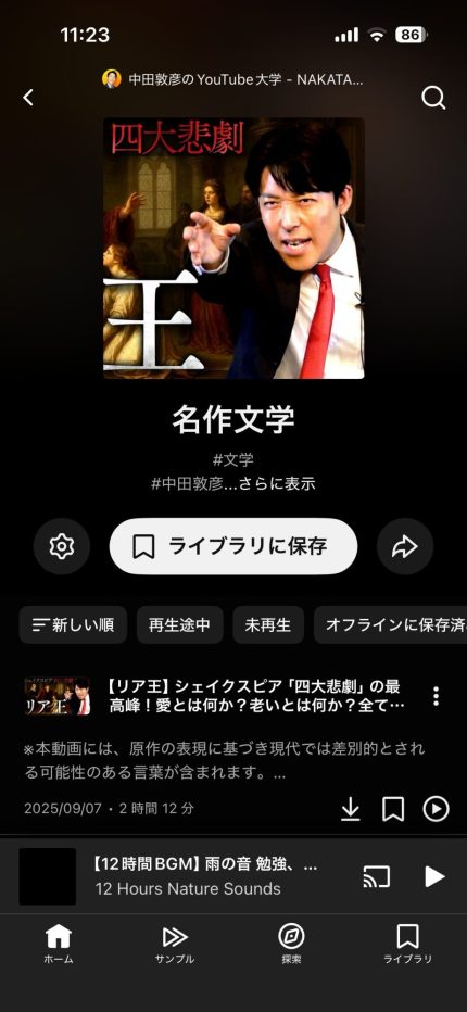 YouTube Musicアプリで再生される場合、バックグラウンドで再生されることが多いです。これは長尺動画にとって有利です。 30分〜1時間の対談や解説動画は、画面をずっと見てもらうのはハードルが高いですが、聞き流しなら最後まで聞いてもらえる確率がグンと上がります。