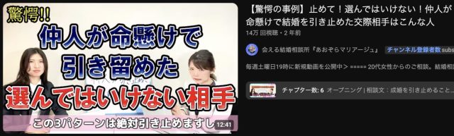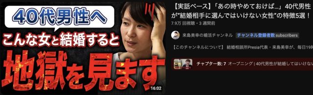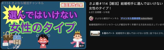 YouTubeで「婚活で選んではいけない女性」で検索します。