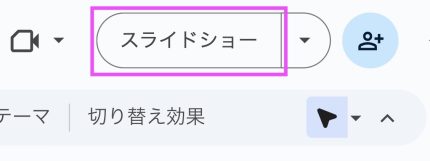 次にGoogleスライドで「スライドショー」をクリックする。スライドが全画面で表示される。