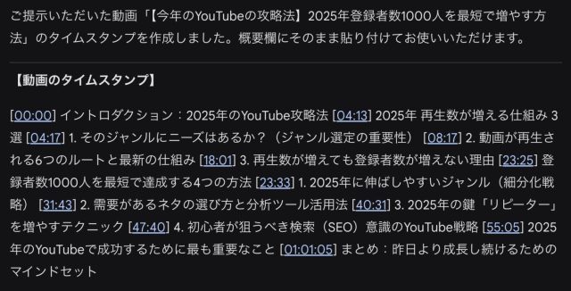 YouTubeのタイムスタンプをAIで10秒で作る方法
